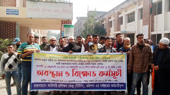 বরিশাল টিটিসি’র কর্মচারিদের অবস্থান ও বিক্ষোভ কর্মসূচি পালিত